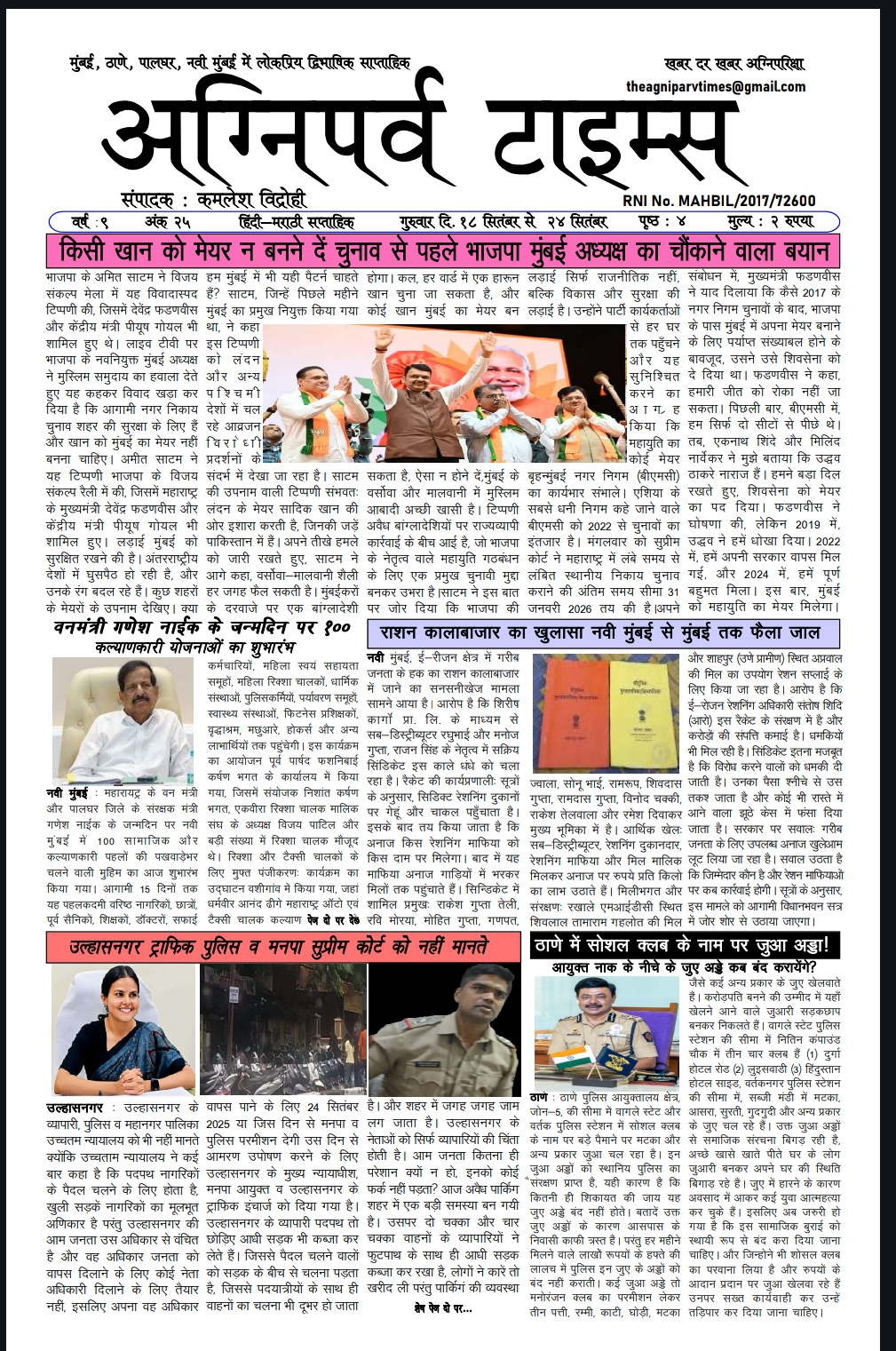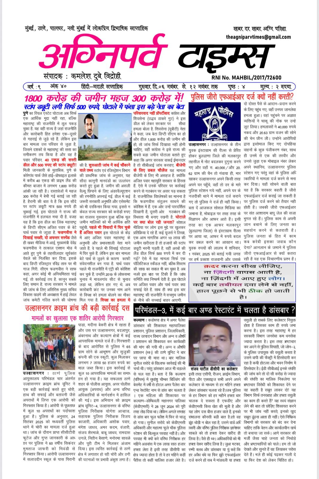 Agniparvनवंबर 23, 2025 कल्याण - डोंबिवली उल्हासनगर की लड़ाई पहुंची दिल्ली ! उल्हासनगर (कमलेश विद्रोही)…