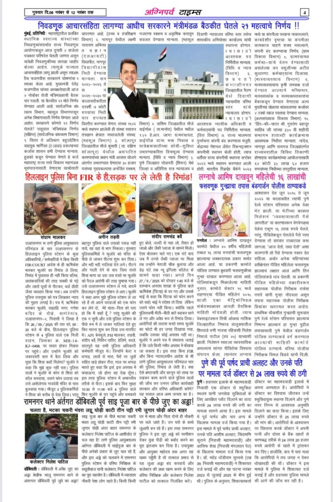 Blog शिवसेना भाजपा में सबकुछ ठीक नहीं, श्रीकांत शिंदे भाजपा को खत्म करने का मौका नहीं छोड़ते Kamlesh vidrohiNovember 23, 2025November 23, 2025 Agniparvनवंबर 23, 2025 कल्याण – डोंबिवली उल्हासनगर की लड़ाई पहुंची दिल्ली ! उल्हासनगर (कमलेश विद्रोही) – ठाणे के वर्चस्व की लड़ाई…